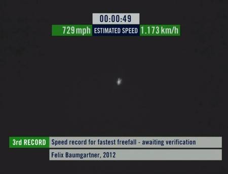 Le 14 octobre 2012, Félix a atteint une vitesse estimée à 833.9 mph, soit à 1 342.03 km/h , dépassant le mur du son. Il a donc été