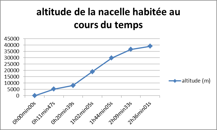 Graphique de la montée de la nacelle habitée au cours du temps :